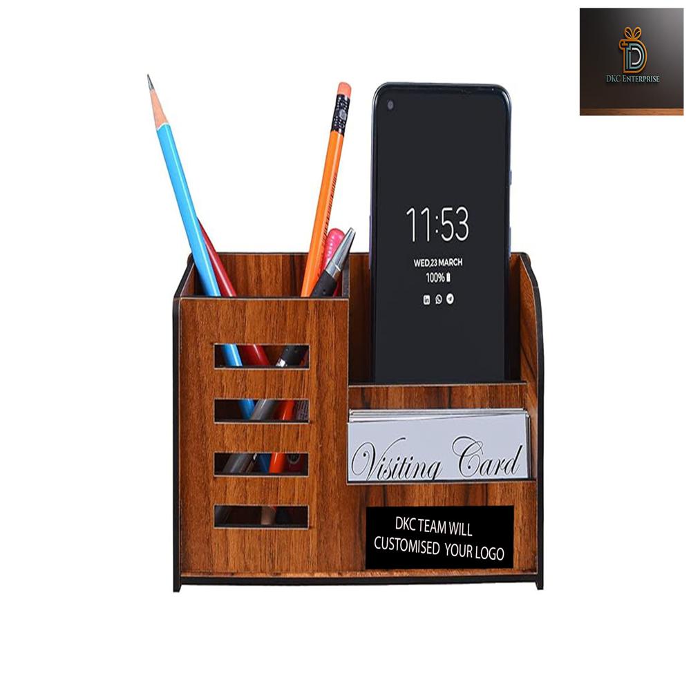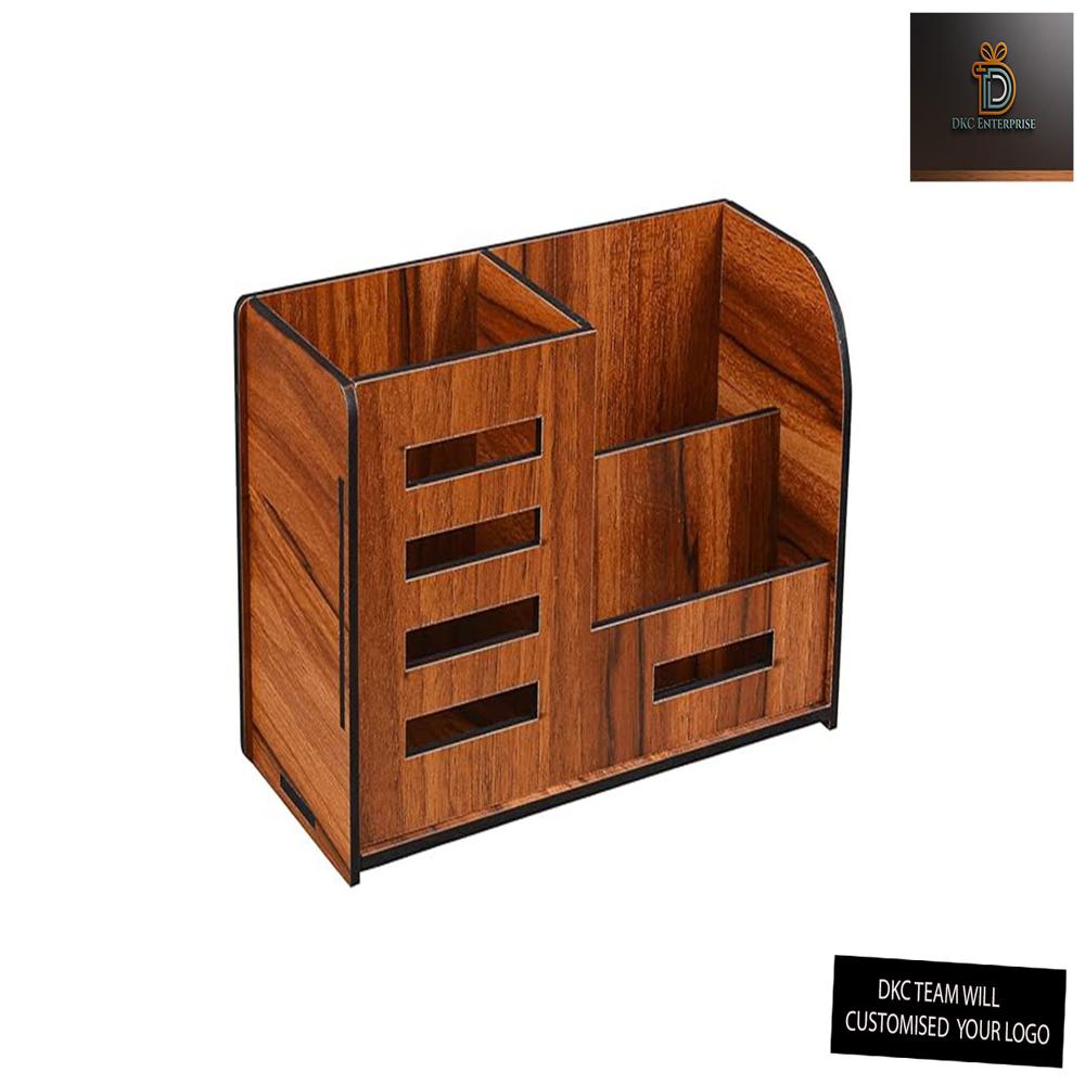 The Wooden Kc MDF Pen Stand is a practical and eco-friendly addition to any workspace. Crafted from premium wood, this rectangular pen stand features a matte finish that adds a touch of sophistication to your desk. Its brown color complements various decor styles, while the tabletop mount design ensures easy placement and accessibility. The durable construction offers long-lasting usage, making it both functional and stylish. Designed with an environmentally conscious approach, this pen stand is perfect for organizing pens, pencils, and other small desk essentials without compromising on sustainability.
